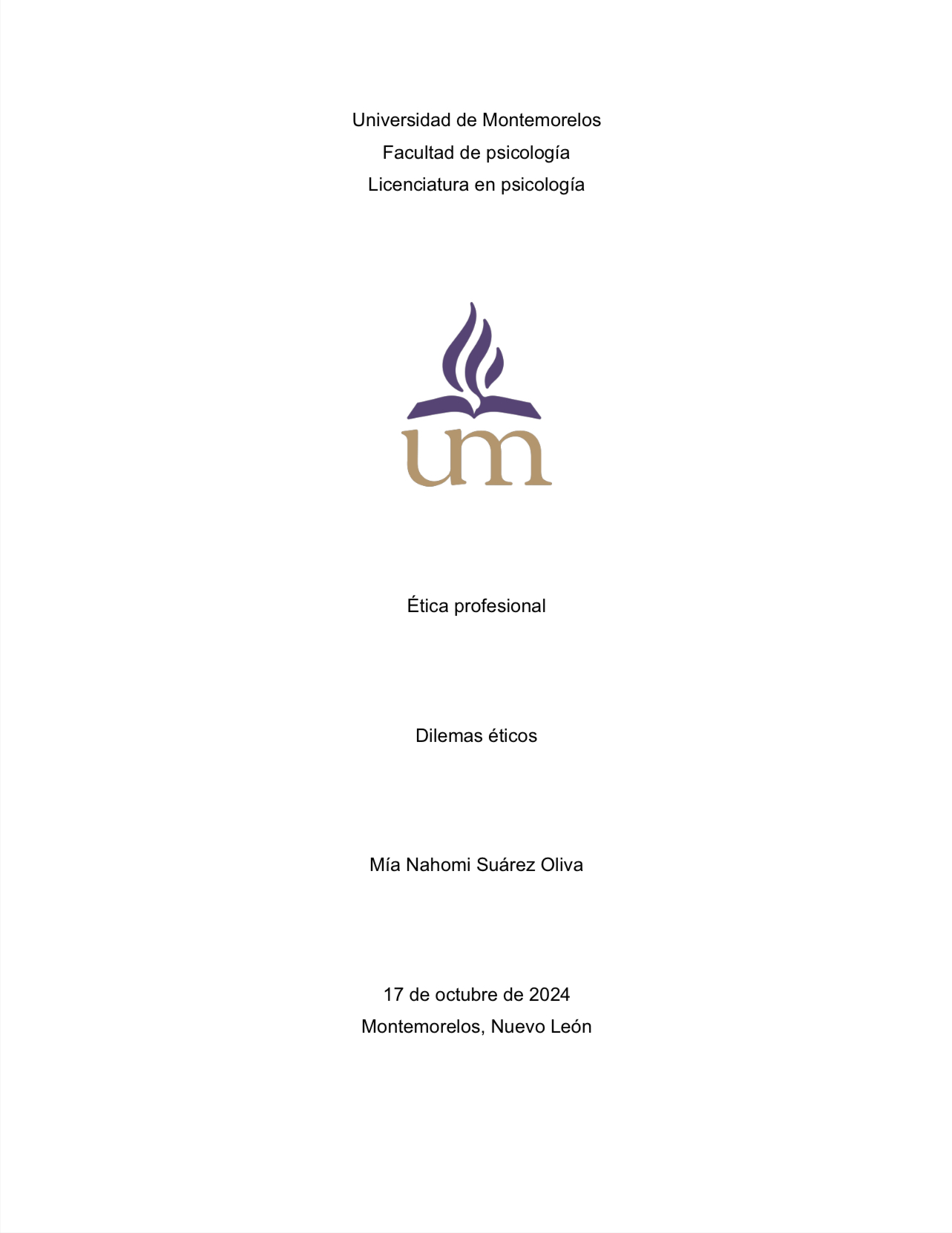 En esta actividad de la materia de Ética Profesional, desarrollé un ensayo en el que exploré diversos dilemas éticos que pueden presentarse en el ámbito profesional. Analicé situaciones hipotéticas y reales, considerando los principios éticos fundamentales y las posibles decisiones que se podrían tomar en cada caso